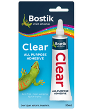 “The all-purpose household adhesive, which is clear, strong and quick drying. Excellent for use in the home, office, and school. It provides good adhesion to cardboard, leather, glass, ect.”